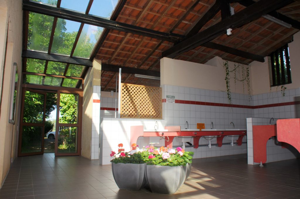 Notre espace sanitaire comporte aussi un vaste espace bébé (table à langer et baignoire), une laverie (lave-linge, sèche-linge, table et fer à repasser) .