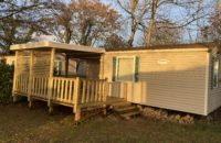 More outdoor space with its 18 m² semi-covered terrace. This COMFORT mobile home is designed for 4 people with 2 bedrooms. With a surface area of 24.5 m², it is ideal for a couple with 2 children. It features one bedroom with a 140×190 double bed and one bedroom with two 80×190 single beds, a kitchen area equipped with a 210 L fridge/freezer, a shower room and toilet, and finally an 18 m² semi-covered terrace. Your vehicle will be parked on your pitch. TV (TNT HD) included – Free WiFi for 2 hours per day – Parking space on the pitch Pets welcome